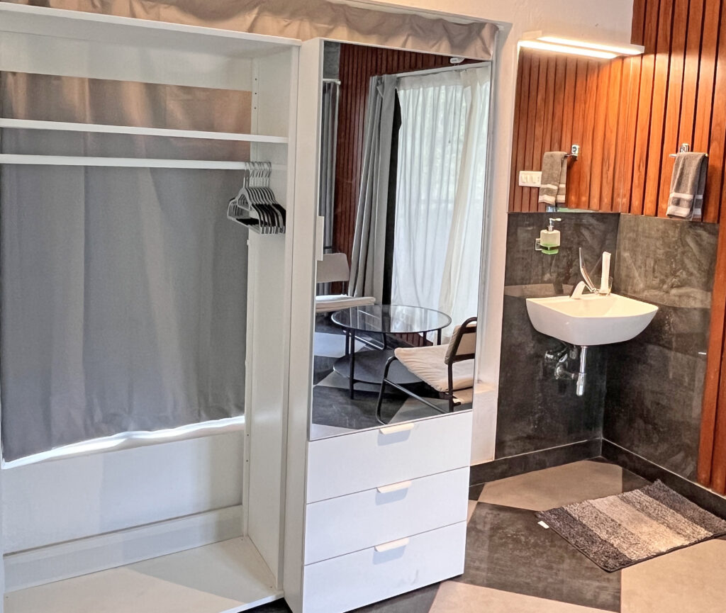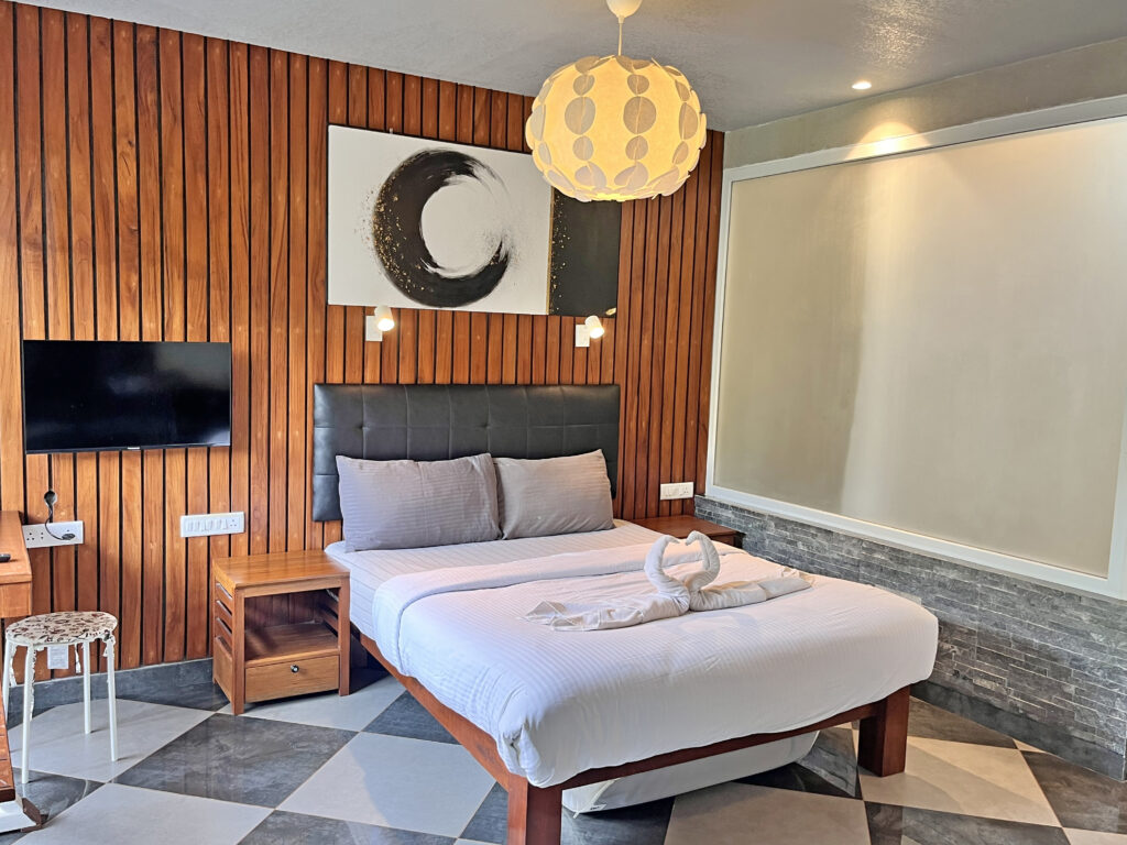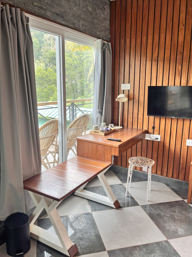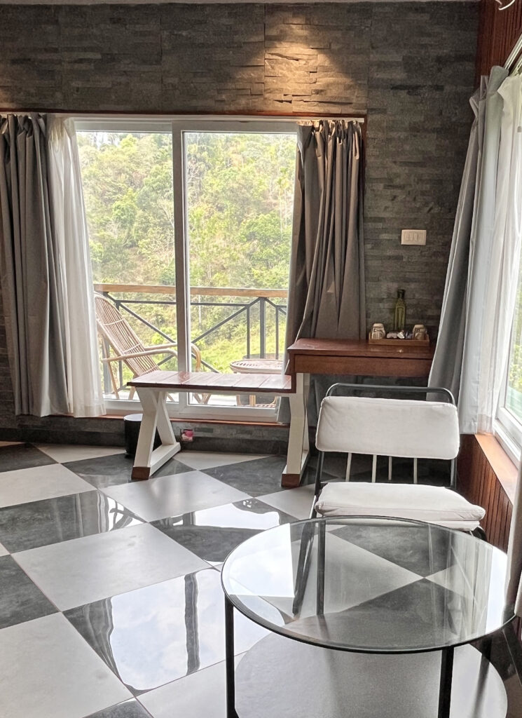 Large windows allow natural light to fill the space while offering stunning views of the surrounding valleys. With carefully designed interiors and modern facilities, our rooms create a warm and inviting environment for guests looking for a peaceful stay in Munnar.